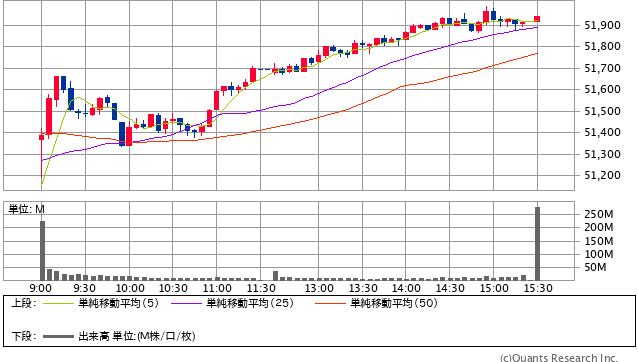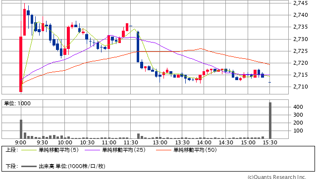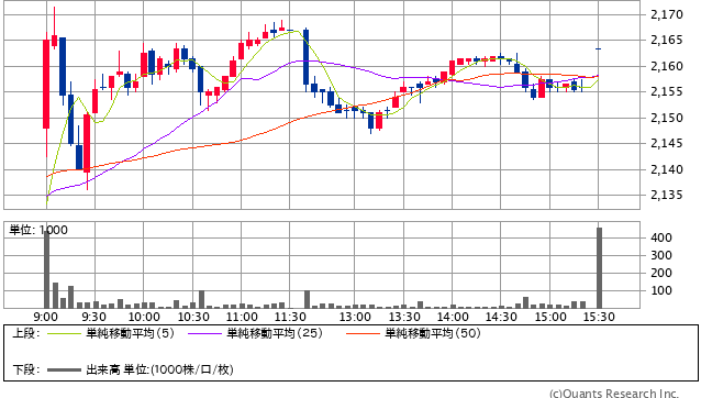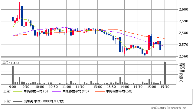 前日終値 2580円 → 本日終値 2564.5円 -5160円