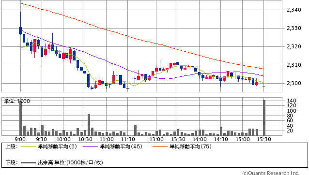 前日終値 2316円 → 本日終値 2298円 -12807円