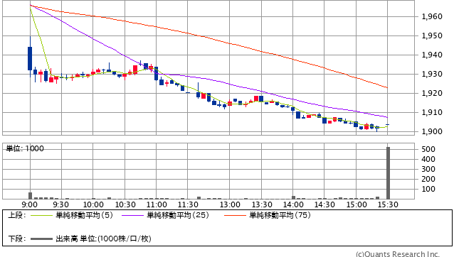 前日終値 1973円 → 本日終値 1903.5円 -14404円