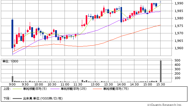 前日終値 1964.5円 → 本日終値 1991円 -1849円