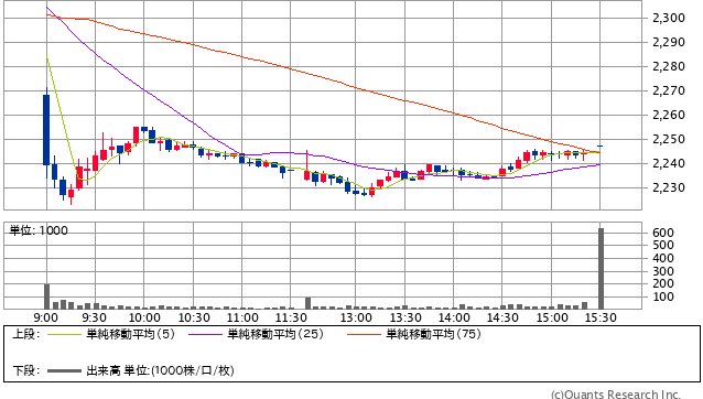 売建金額 2291円 → 本日終値 2247円 +2603円