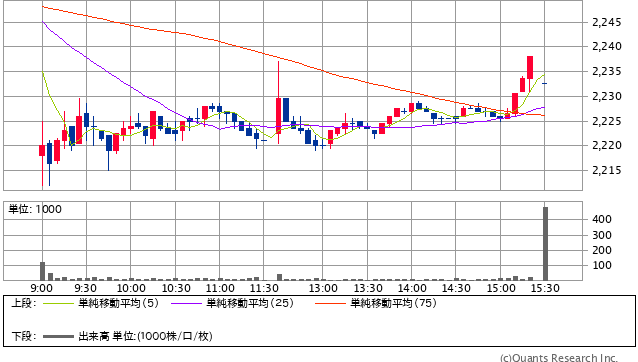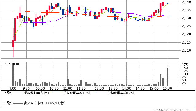 前日終値 2317円 → 本日終値 2339円 -5236円