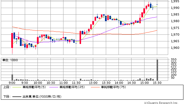 前日終値 1960.5円 → 本日終値 1992.5円 -1775円