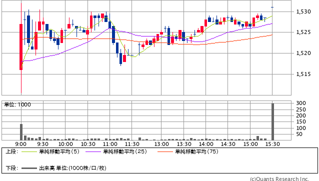 前日終値 1517円 → 本日終値 1531円 -5030円