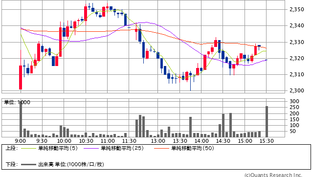 前日終値 2343.5円 → 本日終値 2319円 -9398円