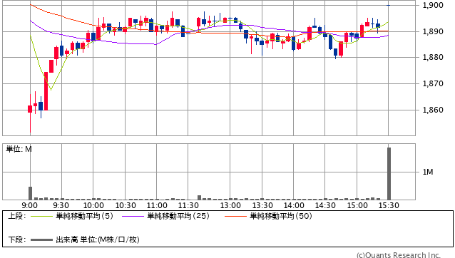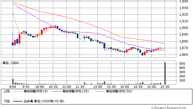 前日終値 1936円 → 本日終値 1870円 -14194円