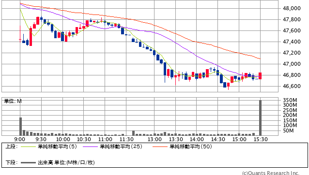 寄り付き後は強かったが、後場にかけて反転。