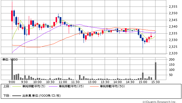 前日終値 2319円 → 本日終値 2336円 -6106円