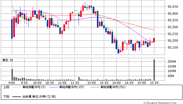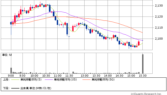 前日終値 2111円 → 本日終値 2098.5円 +23887円