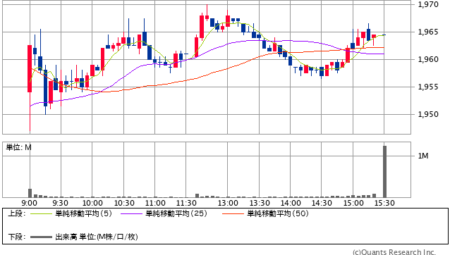 前日終値 1954円 → 本日終値 1964.5円 +4283円
