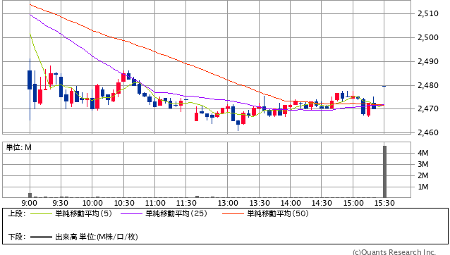 売建金額 2513円 → 本日終値 2479.5円 +4445円