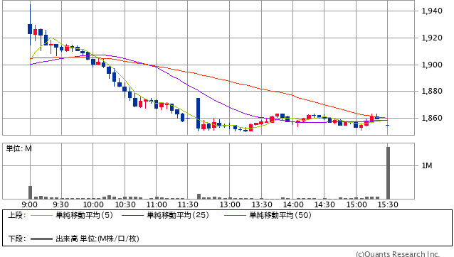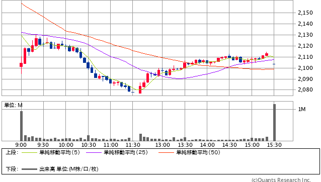 前日終値 2128.5円 → 本日終値 2103.5円 -9400円