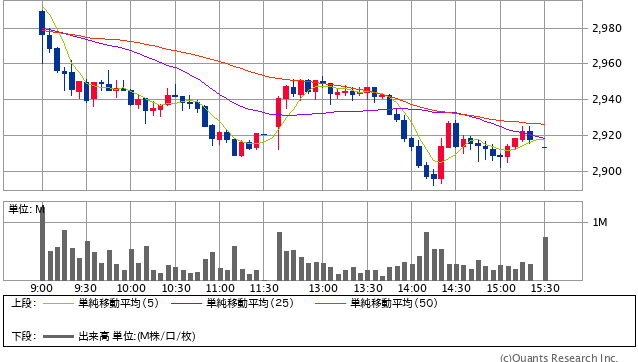 前日終値 2999円 → 本日終値 2913円 -11469円