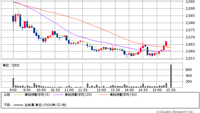 前日終値 2096円 → 本日終値 2067円 -19448円