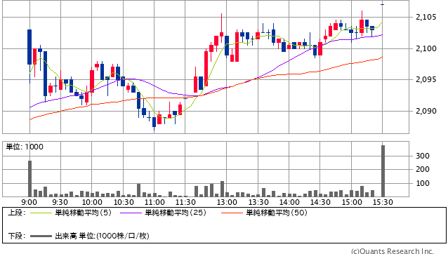 前日終値 2067円 → 本日終値 2107円 -11771円
