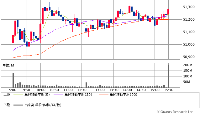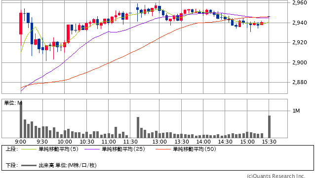 前日終値 2905.5円 → 本日終値 2945円 -17326円