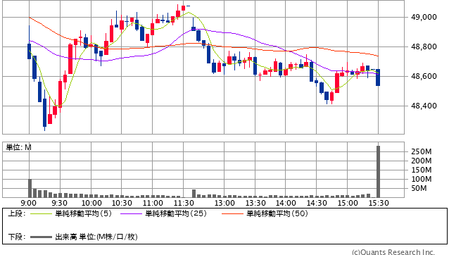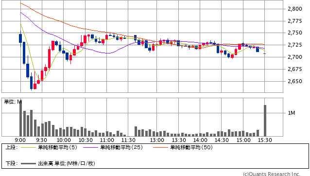 前日終値 2969.5円 → 本日終値 2707円 -41396円