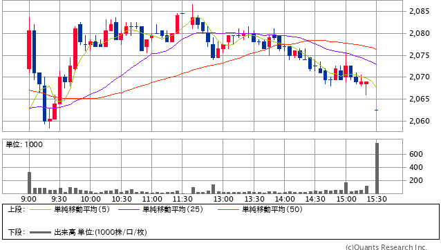前日終値 2058円 → 本日終値 2058円 -16340円