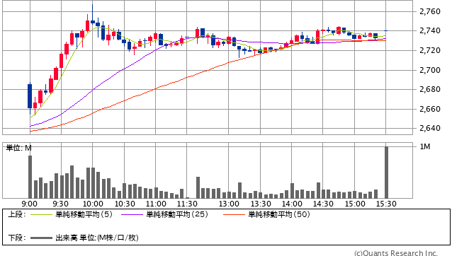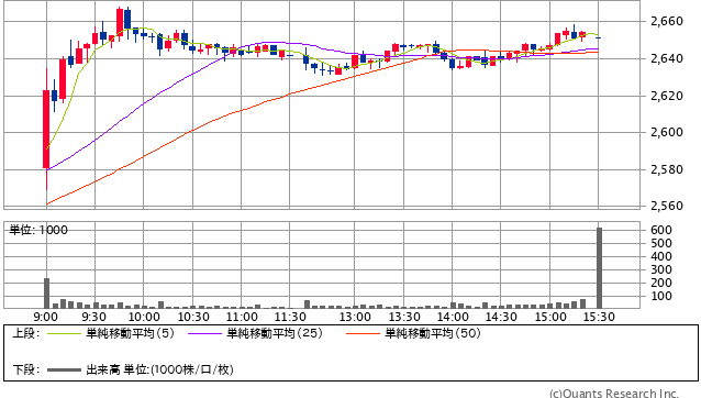買建金額 2581円 → 本日終値 2651.5円 +6974円