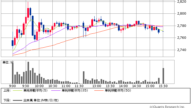 前日終値 2740円 → 本日終値 2770.5円 +2332円