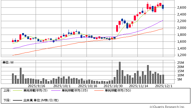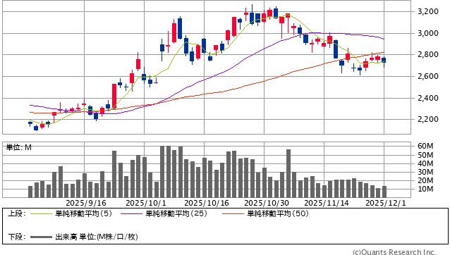 前日終値 2785.5円 → 本日終値 2730円 -1760円