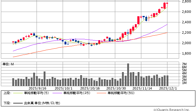 なので、引けで2769.5円で100株買い増し。