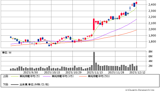 前日終値 2369円 → 本日終値 2441.5円 +17737円