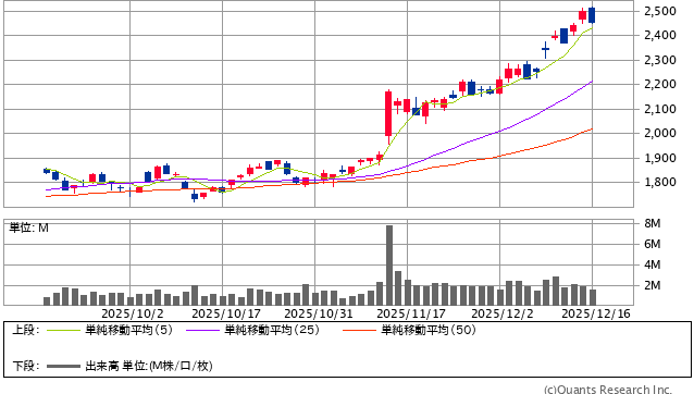 前日終値 2497.5円 → 本日終値 2454円 +18562円