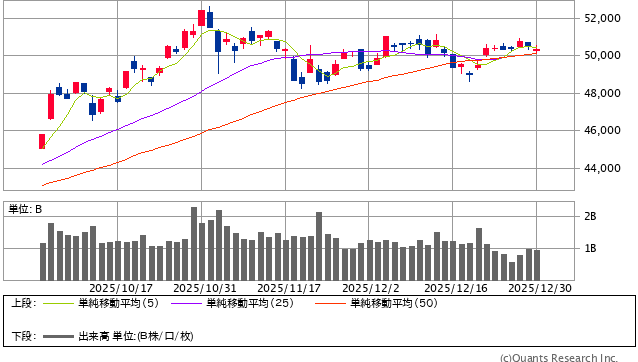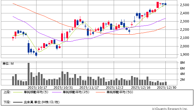 前日終値 2513.5円 → 本日終値 2500.5円 -1957円