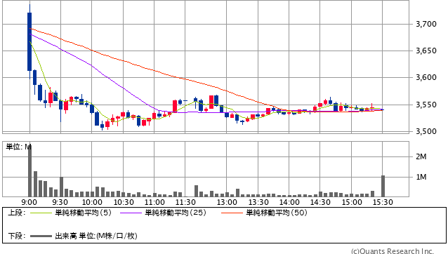前日終値 2806円 → 本日終値 2795円 -2608円