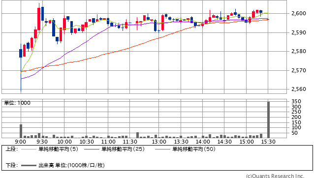 前日終値 2563.5円 → 決済金額 2597円 +2772円
