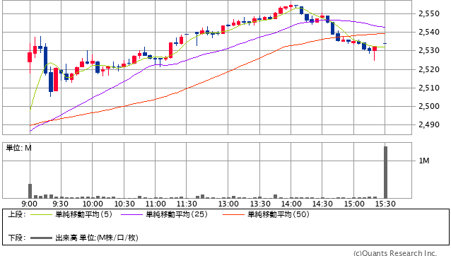 最高値が2536円あたりだったので、決済金額あたりを目標に指値設定をしていたところ、何とか約定してくれた。