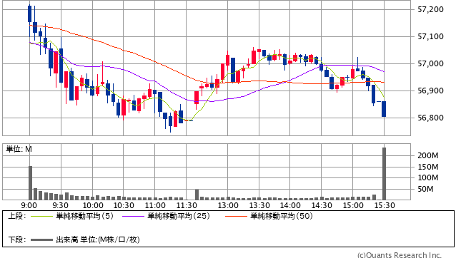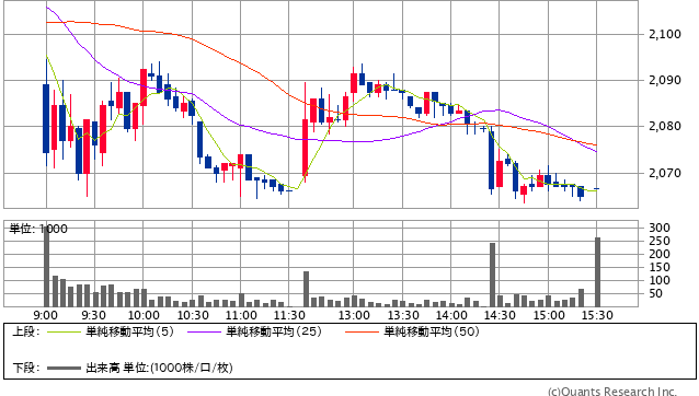 前日終値 2092円 → 本日終値 2066.5円 -5073円