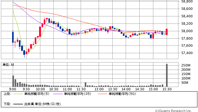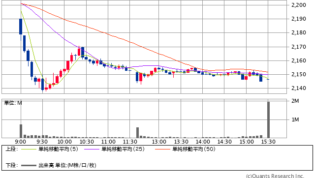 さすがに寄り付きから続落したものの、2140円でストップ。