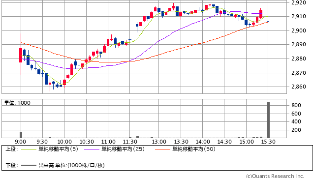 前日終値 2866.5円 → 決済金額 2914.2円 -541円