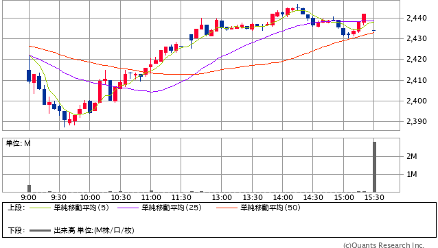 前日終値 2437円 → 決済金額 2432.6円 +2124円