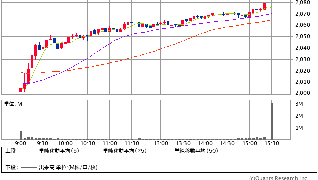 前日終値 2006円 → 本日終値 2035円 +688円