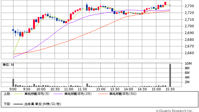 先物から上がっていたのは昨日と同様だが、昨日とはうってかわって強く推移。