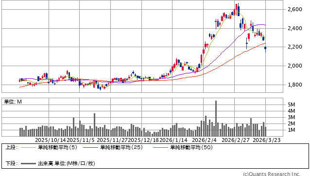 チャートは引け買いだったので、6か月チャートを転載。