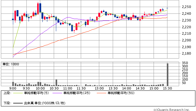 前日終値 2182円 → 決済金額 2222.5円 +4267円
