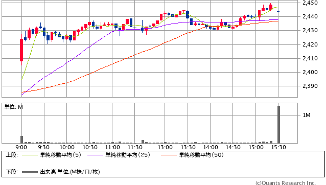 買値金額 2433.5円 → 本日終値 2443.5 +1926円