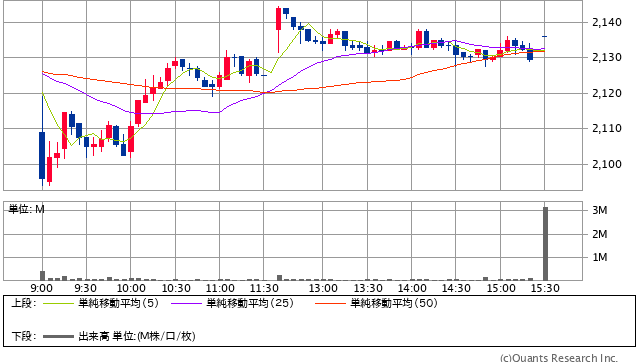 寄り付きから売りで入ったが、1時間ほどレンジ状態で下抜けを期待したが、2100円を割ろうとすると強烈な買いを入れるアルゴがいた。