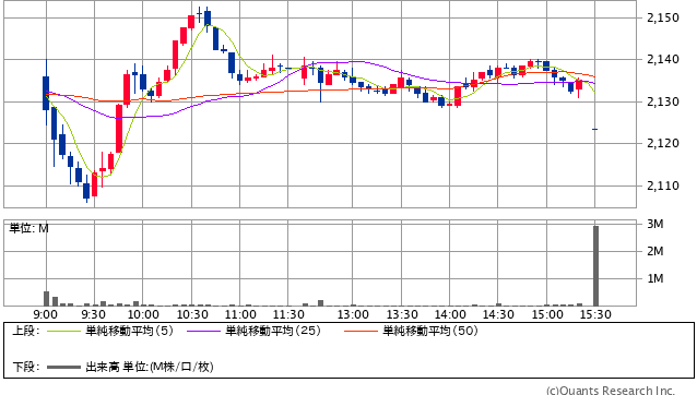 前日終値 2136円 → 決済金額 2108.4円 -20円