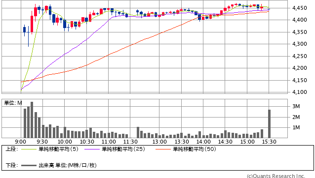 前日のマイナスから、寄り付きで一気にギャップアップ。