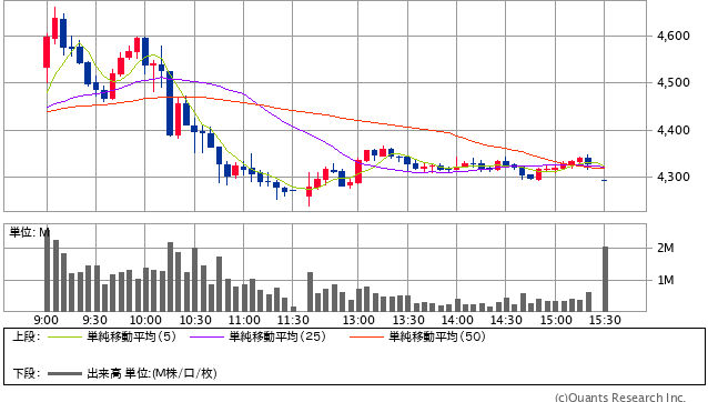買建金額 4453円 → 本日終値 4293円 -32136円