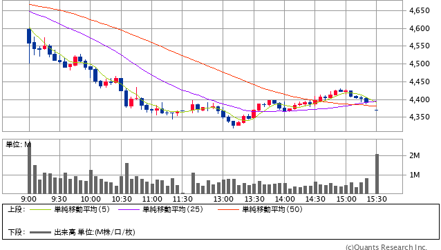 そしたら、寄り付き1分前になって一気に気配値が下に走って、こちらの4600円も超えて4597円で寄り付いた。
