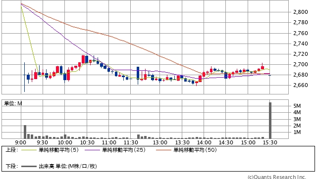 前日終値 2811円 → 本日終値 2679円 -6713円
